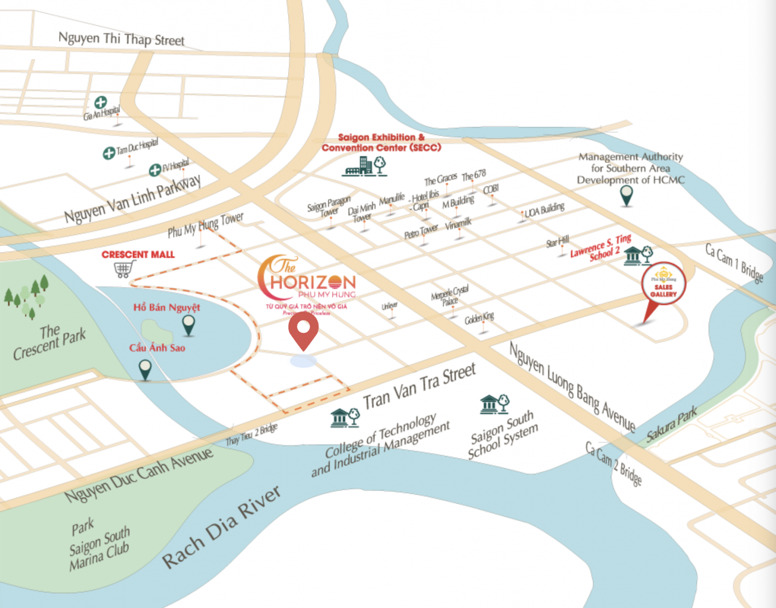 Phu My Hung The Horizon – 富美興首個豪華公寓項目,位於國際服務中心 The Crescent 的中心,擁有兩個著名地標:半月湖和星光橋。 擁有獨一無二的全景視野,可直接欣賞星光橋、新月廣場購物中心、Cả Cấm 河和綠意盎然的半月湖公園。 The Horizon 富美興 – 這是半月湖地區第一個也是唯一一個滿足對綠色和高端生活空間的嚴格標準的項目,靈活適應,確保為尊貴的所有者 - 精英階層的需求提供充分的便利和現代化。