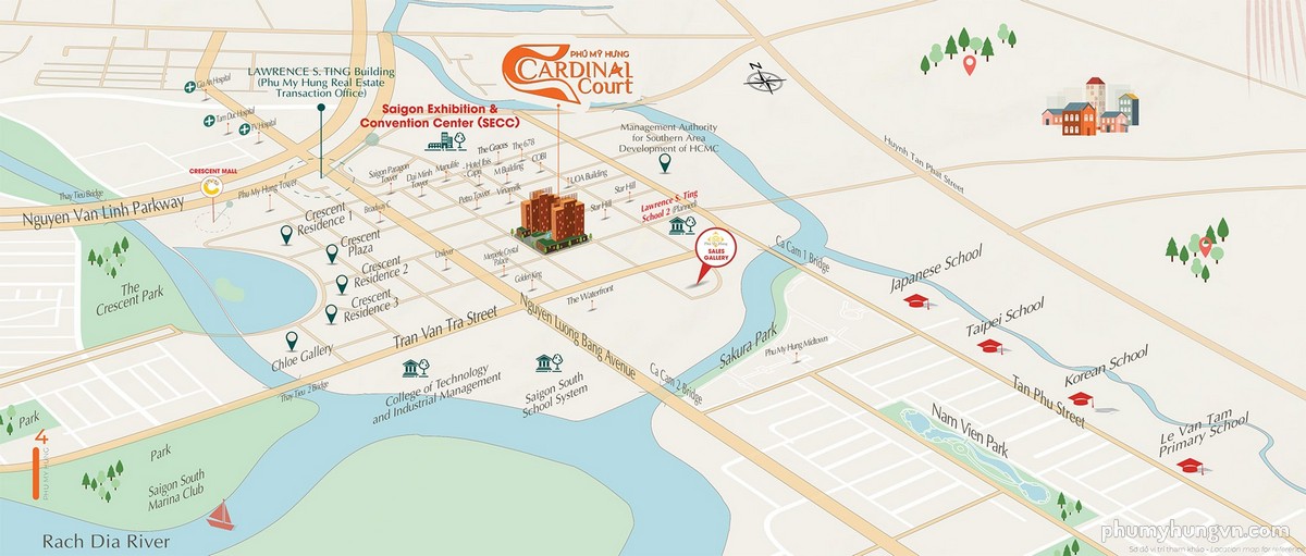 CARDINAL COURT 以高端客群為目標,在胡志明市中心住宅供應日益稀缺的背景下,致力於推動城市最大商業大道——阮良平大道(Nguyễn Lương Bằng)上的高級房地產發展。