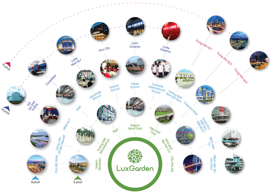 LUX GARDEN 位於第七郡中心地段,坐落於 Nguyễn Văn Quỳ – Đào Trí 兩條主幹道沿線,緊鄰富美興新市區及 Saigon Peninsula。作為南西貢高端生活方式的象徵之一,從 Lux Garden 出發,住戶可在 5 至 10 分鐘內輕鬆連接至富美興新市區、Saigon Peninsula 綜合區以及第一郡市中心。