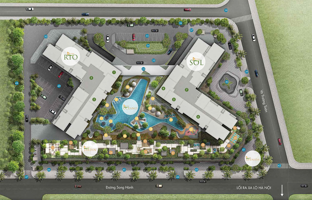 Masteri An Phú 擁有超過50項內部配套設施,規劃為三大主題區域,涵蓋多元化的生活體驗:從 Avenida 區域的度假式高端設施,到 Oceano 的清涼泳池空間,以及 Sky Jardin 獨具特色的1300平方米空中花園。所有設施共同打造理想的居住環境,為未來住戶帶來舒適愜意的生活體驗,全面滿足家庭每一位成員的需求。