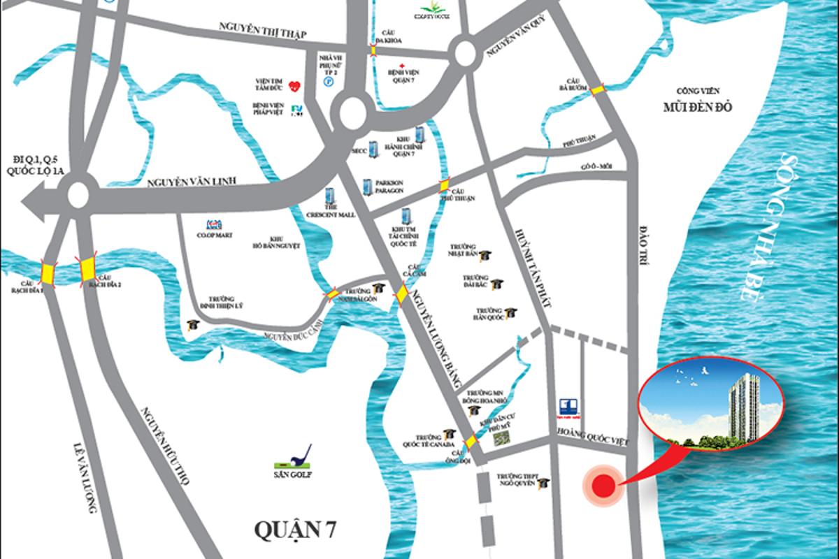 公寓坐落於 胡志明市第7郡富美坊皇國越路正面,緊鄰 La Casa 綜合住宅區,僅需數分鐘即可抵達南西貢最繁榮的都市核心——富美興新市區。憑藉優越的地理位置,住戶可輕鬆連接主要交通幹道,快速前往第1郡、第4郡、第8郡及胡志明市其他重要區域。